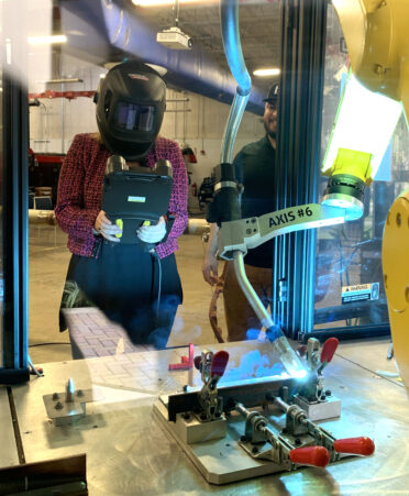 She accepted a challenge to maneuver a robotic arm using a pendant device with the assistance of Welding Technology instructor Isaac Rivas.