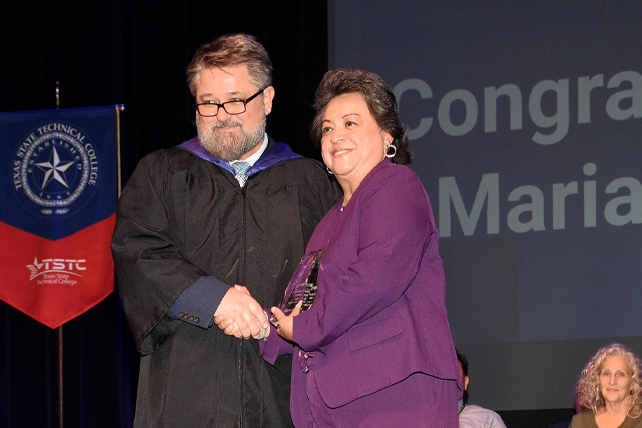Maria holds a Master of Arts degree in Management with a concentration in Human Resources and a Bachelor of Science degree in Occupational Education from Wayland Baptist University. An alumna of Texas State Technical Institute (now TSTC), Maria is deeply committed to the mission of technical education and student success. A bilingual communicator fluent in Spanish, she brings a strong cultural competency to her work and service.